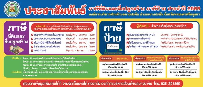 ประชาสัมพันธ์ กำหนดชำระ ภาษีที่ดินและสิ่งปลูกสร้าง ภาษีป้าย ประจำปี 2569
