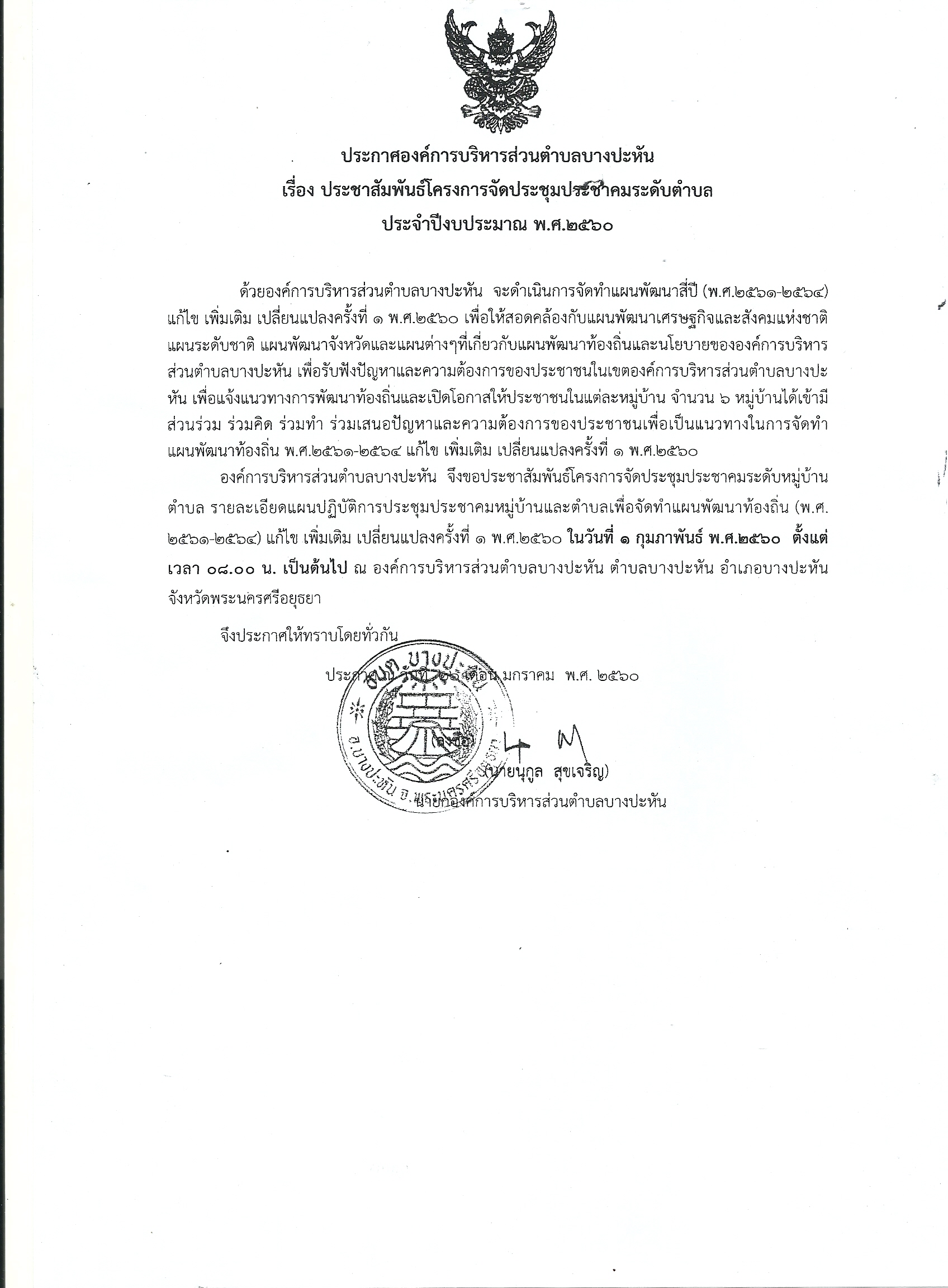 ขอเชิญร่วมรับฟังการประชุมสภาองค์การบริหารส่วนตำบลบางปะหัน สมัยที่3 ครั้งที่1 ประจำปี 2561